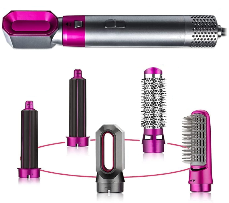 Прилад комплектується 5 змінними насадками, що дозволяють легко створювати об'єм, завивати локони, випрямляти волосся та виконувати швидке сушіння. Легкий корпус і зручна форма роблять використання комфортним для будь-якого типу волосся.