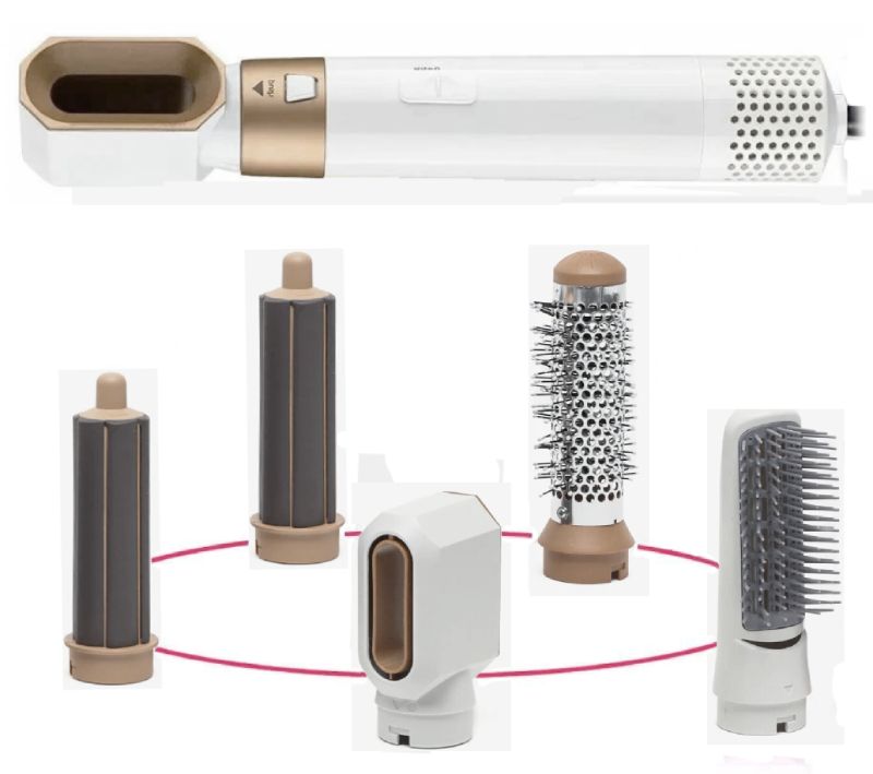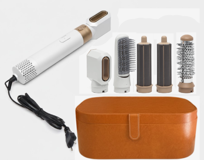 Прилад комплектується 5 змінними насадками, що дозволяють легко створювати об'єм, завивати локони, випрямляти волосся і виконувати швидке сушіння. Легкий корпус і зручна форма роблять використання комфортним для будь-якого типу волосся.