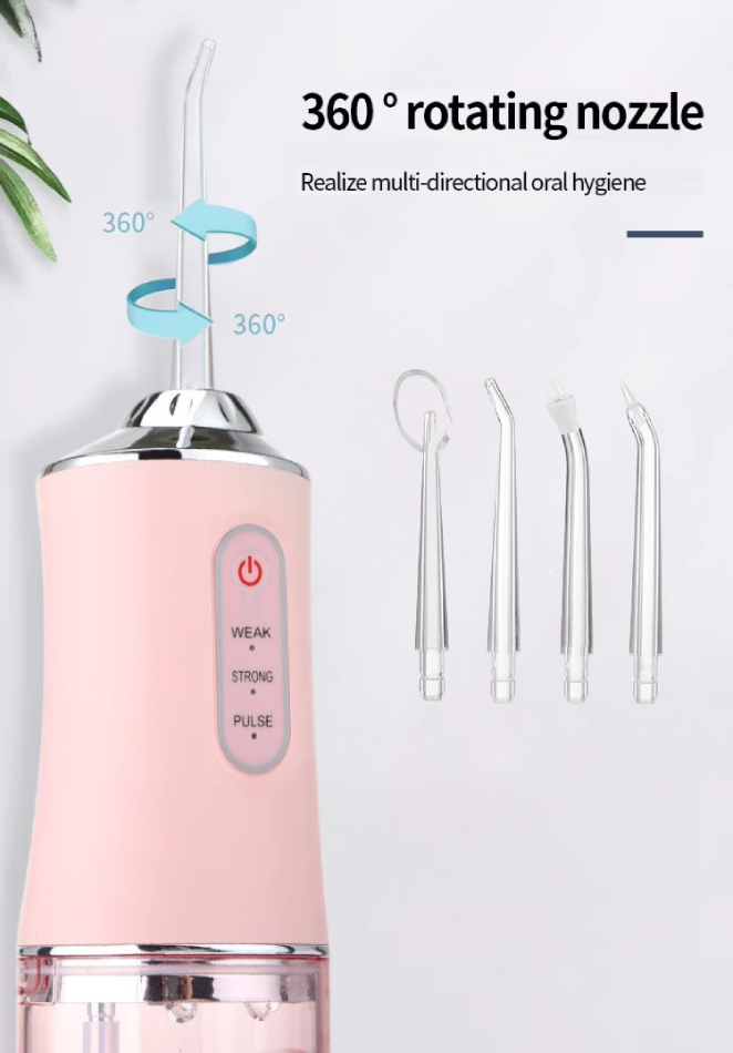 Іригатор для порожнини рота ORAL IRRIGATOR з 3 режимами і насадками — рожевий