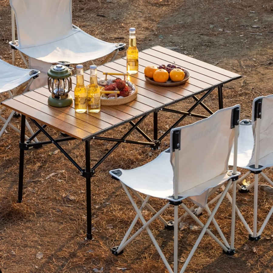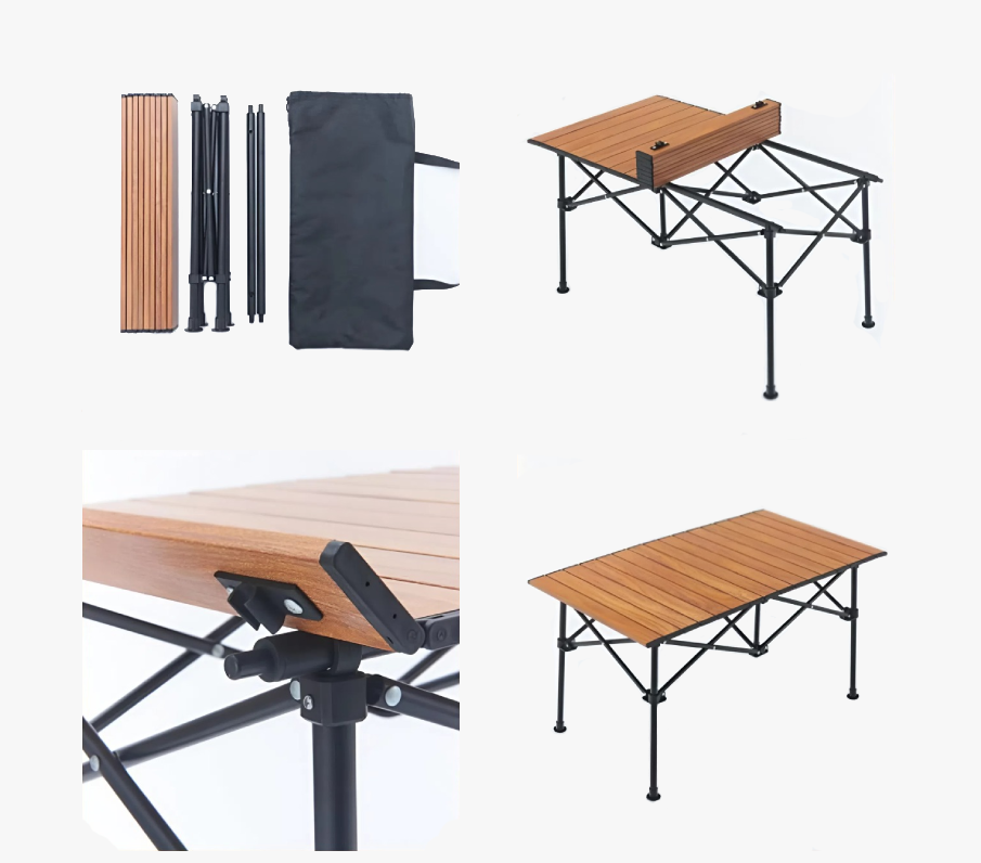Стільниця виконана з алюмінію і в складеному вигляді компактно згортається. Каркас виготовлений з анодованих алюмінієвих ніжок, що забезпечує стійкість, захист від корозії та довгий термін служби.