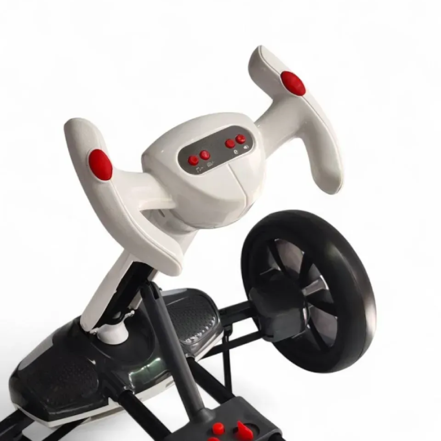 Електрокарт оснащений пультом дистанційного керування, який дозволяє батькам контролювати рух і швидкість, забезпечуючи додаткову безпеку під час катання.