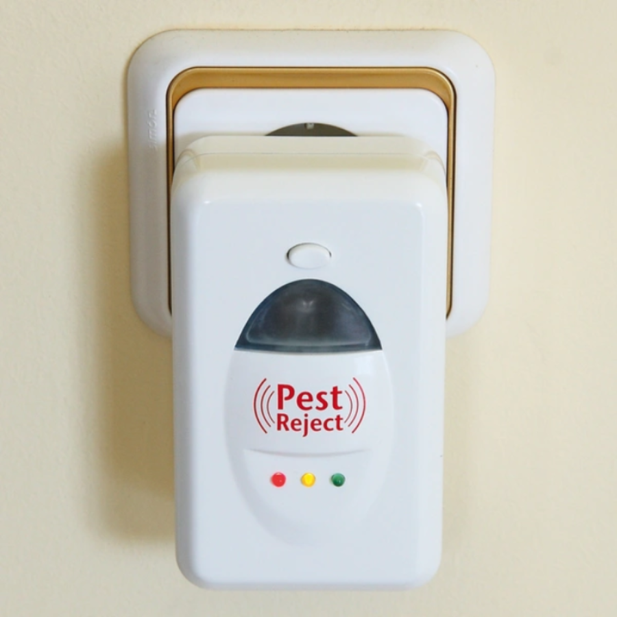 Ультразвуковий відлякувач Pest Reject призначений для зниження активності гризунів та комах у житлових та господарських приміщеннях. Пристрій підключається до електромережі та працює безперервно, створюючи електромагнітні та ультразвукові імпульси, що впливають на нервову систему шкідників.