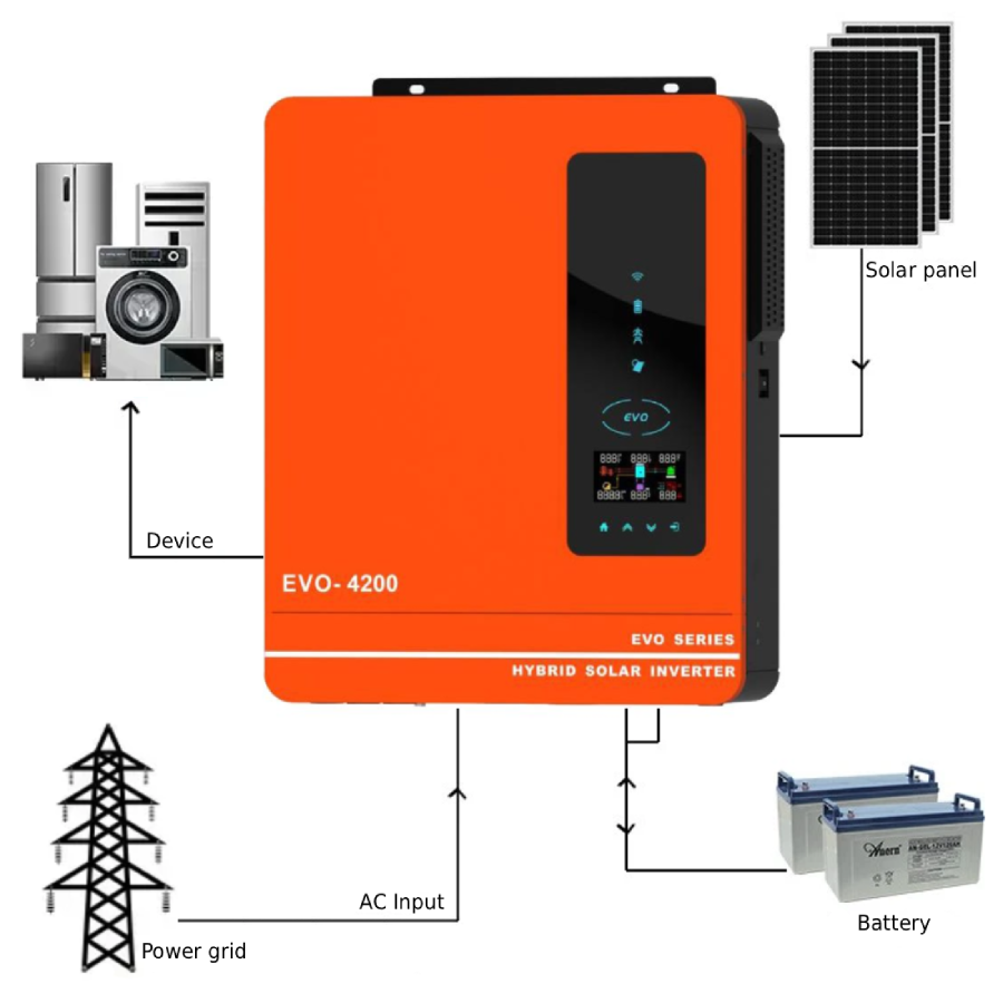ANERN AN-SCI-EVO-4200 підходить для створення автономних і резервних енергосистем. Інвертор забезпечує стабільну роботу побутових приладів, опалювального обладнання та електроніки, об'єднуючи високу потужність, гнучкість налаштування та підтримку сонячної генерації в одному пристрої.