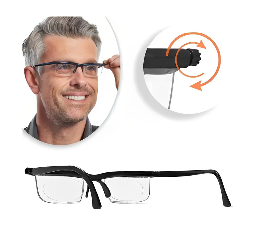 Dial Vision — це окуляри з регульованими лінзами, які можна налаштувати під потрібний зір без візиту до лікаря та підбору в салоні оптики. Налаштування виконується за допомогою коліщаток на оправі — окремо для кожного ока.