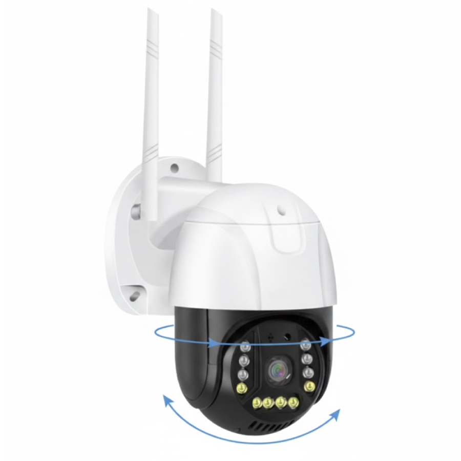 Камера оснащена поворотним механізмом з можливістю обертання до 320° по горизонталі та до 90° по вертикалі. Управління здійснюється через мобільний додаток V380 Pro на смартфоні.