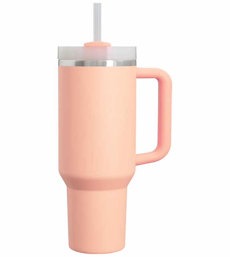Термокружка з трубочкою та ручкою 1,18 л — вакуумна, персикова