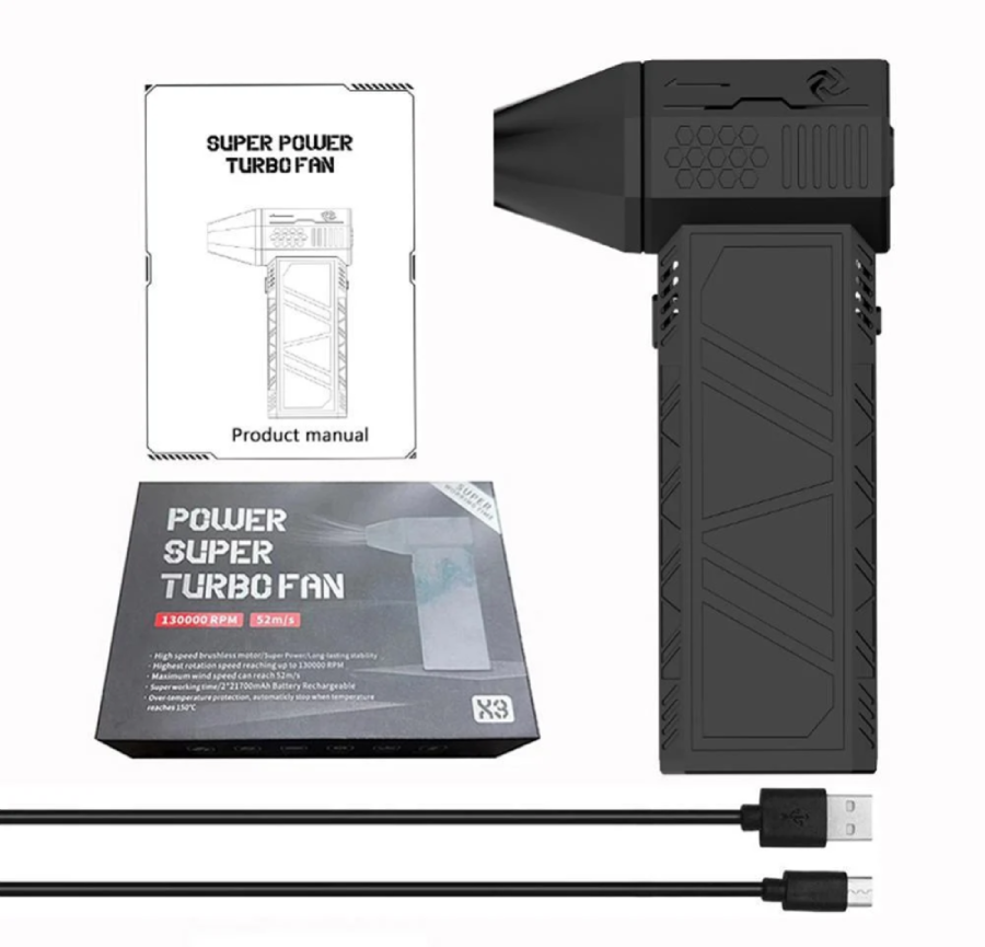 Turbo Jet Fan X3 — компактний і потужний ручний акумуляторний турбовентилятор, призначений для створення спрямованого потоку повітря високої інтенсивності. Пристрій оснащено безщітковим високошвидкісним двигуном постійного струму і підходить для побутового, професійного та автомобільного використання.