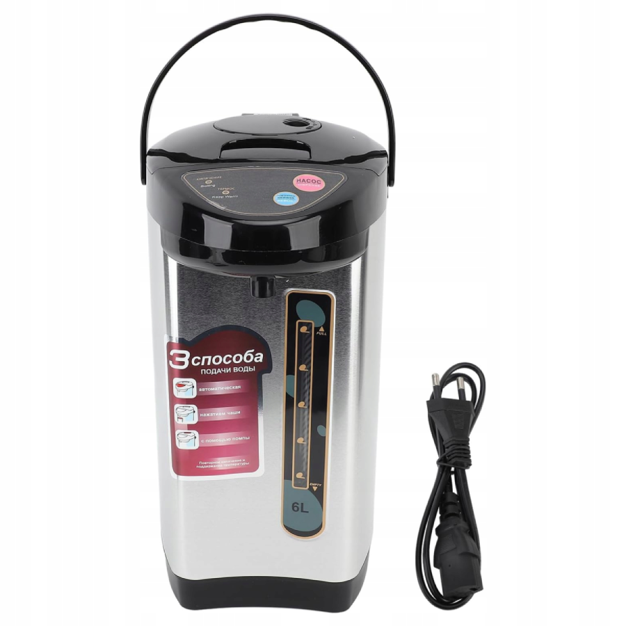 Об'єм 6 літрів робить термопот підходящим для дому, офісу, кухні, зони очікування або невеликих заходів. Термопот підходить для приготування чаю, кави, дитячого харчування та інших гарячих напоїв протягом усього дня.