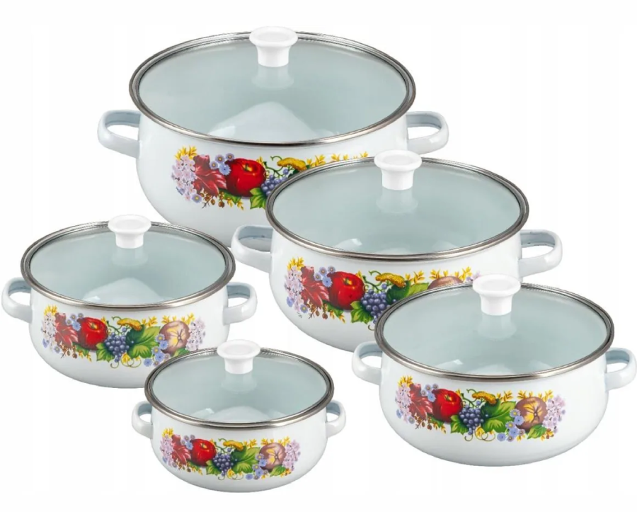 Набір емальованих каструль UNIQUE UN-2355 з кришками 5 штНемає в наявності