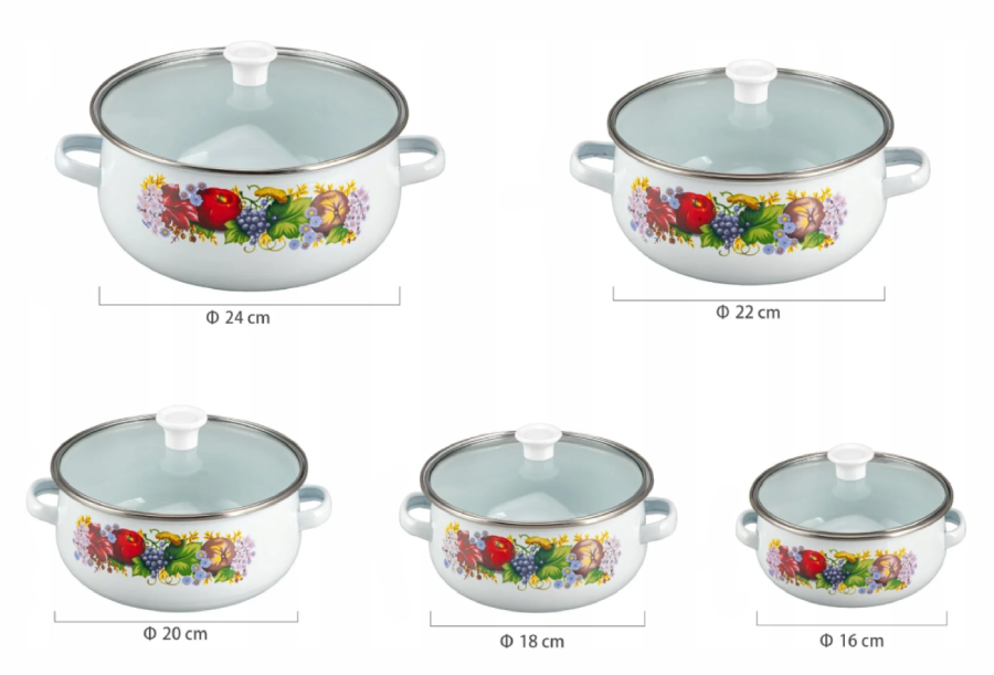 • Діаметри каструль: 16, 18, 20, 22, 24 см