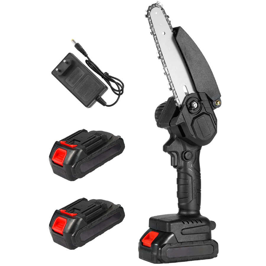 Акумуляторна ланцюгова пила 6 дюймів 24V з двома акумуляторами — практичний і потужний інструмент для обрізки дерев, заготівлі дров та виконання садових робіт. Модель поєднує високу продуктивність, автономність та зручність зберігання і транспортування.