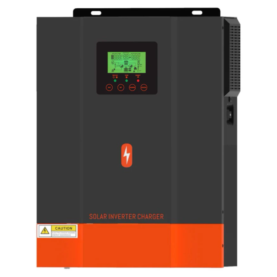 Інвертор працює з акумуляторними батареями 12 В та підтримує як мережеву, так і сонячну зарядку. Вбудований MPPT-контролер з струмом до 80 А забезпечує використання сонячних панелей з потужністю до 2000 Вт без необхідності встановлення зовнішніх контролерів.