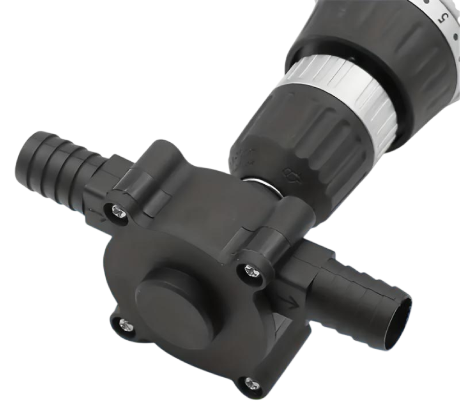 Насадка-насос призначена для перекачки води та технічних рідин з використанням електричної дрелі. Встановлюється в патрон дрелі та приводиться в дію обертанням, забезпечуючи подачу рідини через вхідний та вихідний патрубки.