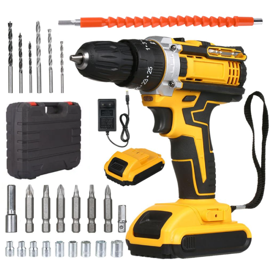 Акумуляторний шуруповерт RD00-202 21V 5Ah з 2 акумуляторами та набором інструментів у кейсі жовтий