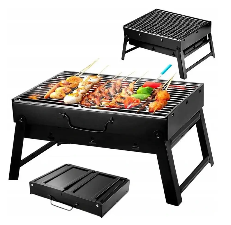 Складаний мангал-барбекю — компактне рішення для приготування м'яса, риби та овочів на вугіллі під час відпочинку на природі, дачі або пікніку. Конструкція складається в плоский кейс, що робить мангал зручним для перевезення та зберігання.