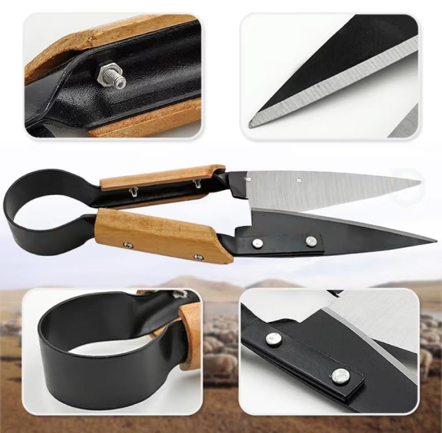 Ножиці для стрижки овець пружинні з дерев'яними ручками