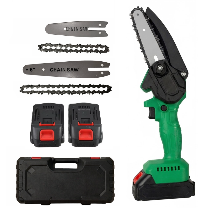 У комплект входять дві шини довжиною 4 і 6 дюймів, що дозволяє підібрати оптимальний варіант під різні види робіт — від акуратної підрізки тонких гілок до більш щільної деревини. Легка вага та ергономічна рукоятка забезпечують комфорт при тривалому використанні.